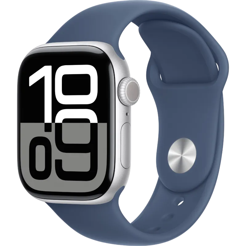 Apple Watch Series 10 42mm Aluminum Silver Case Denim Sport Band S/M